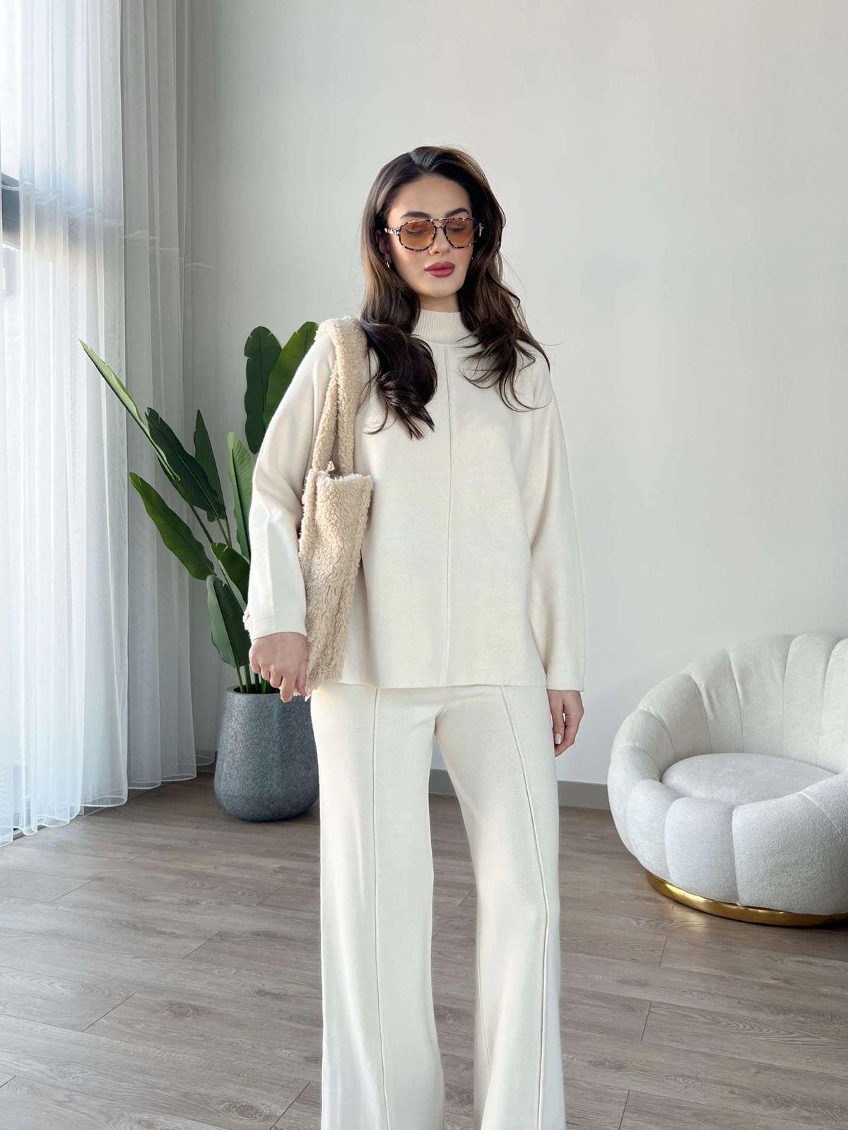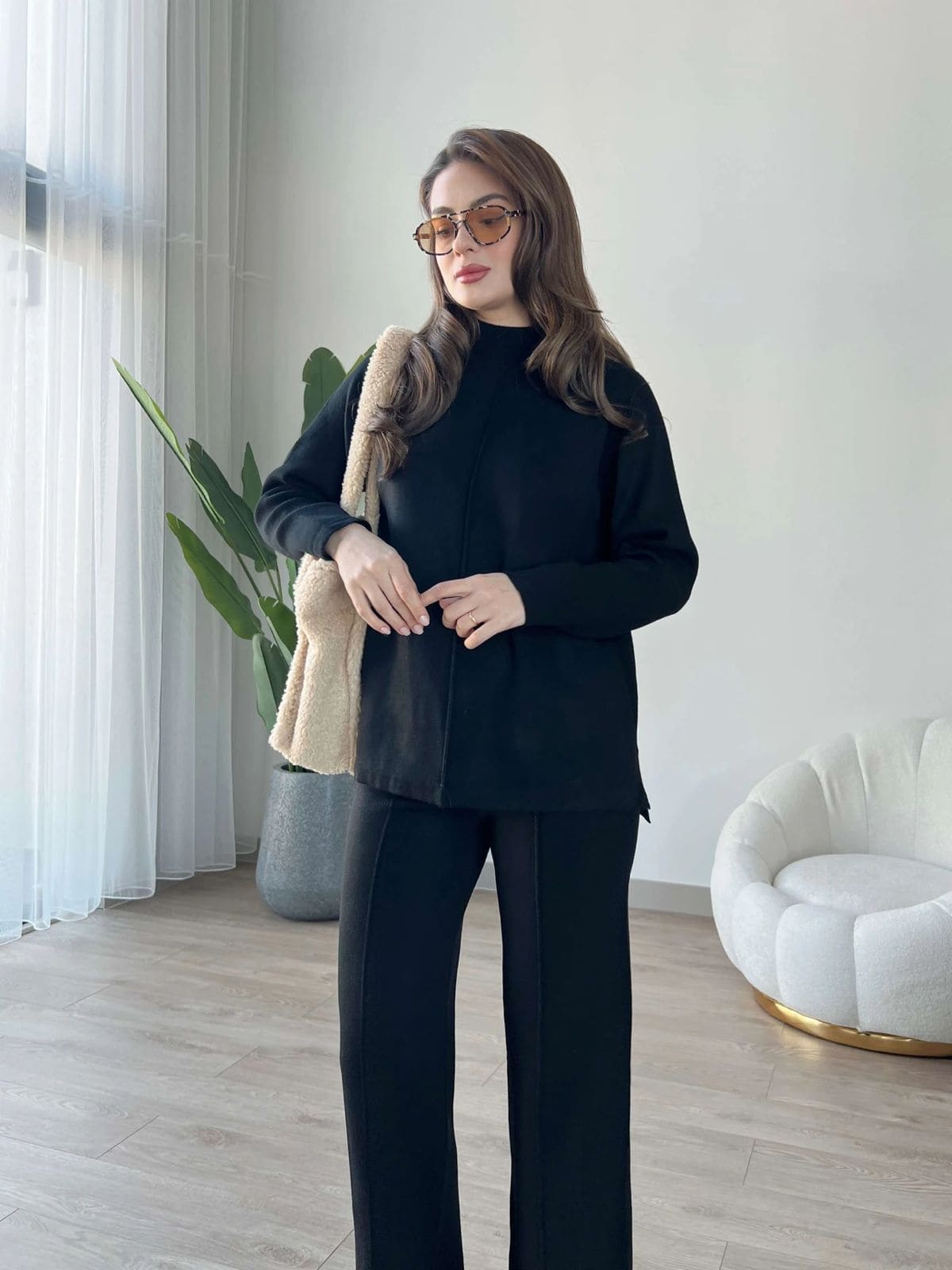 Offrez à votre garde-robe une touche de sophistication avec cet ensemble chic et intemporel en maille fine. Composé d’un haut et d’un pantalon, il allie élégance et confort, idéal pour toutes vos occasions.