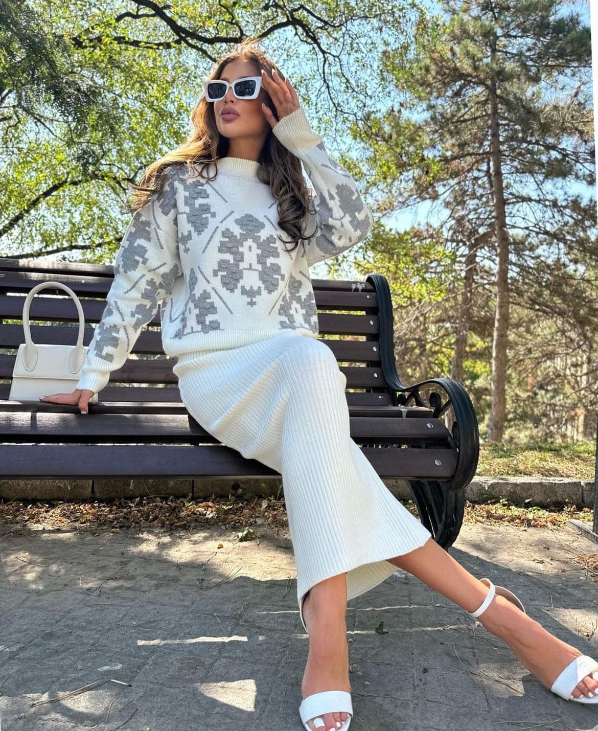 Découvrez le Duo Tricot Glamour, un ensemble raffiné composé d’un tricot à motif et d’une jupe en maille fine. Ce duo allie style, confort et sophistication pour sublimer vos tenues en toutes occasions.
