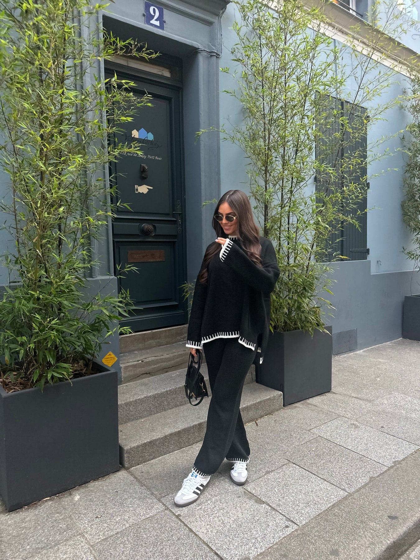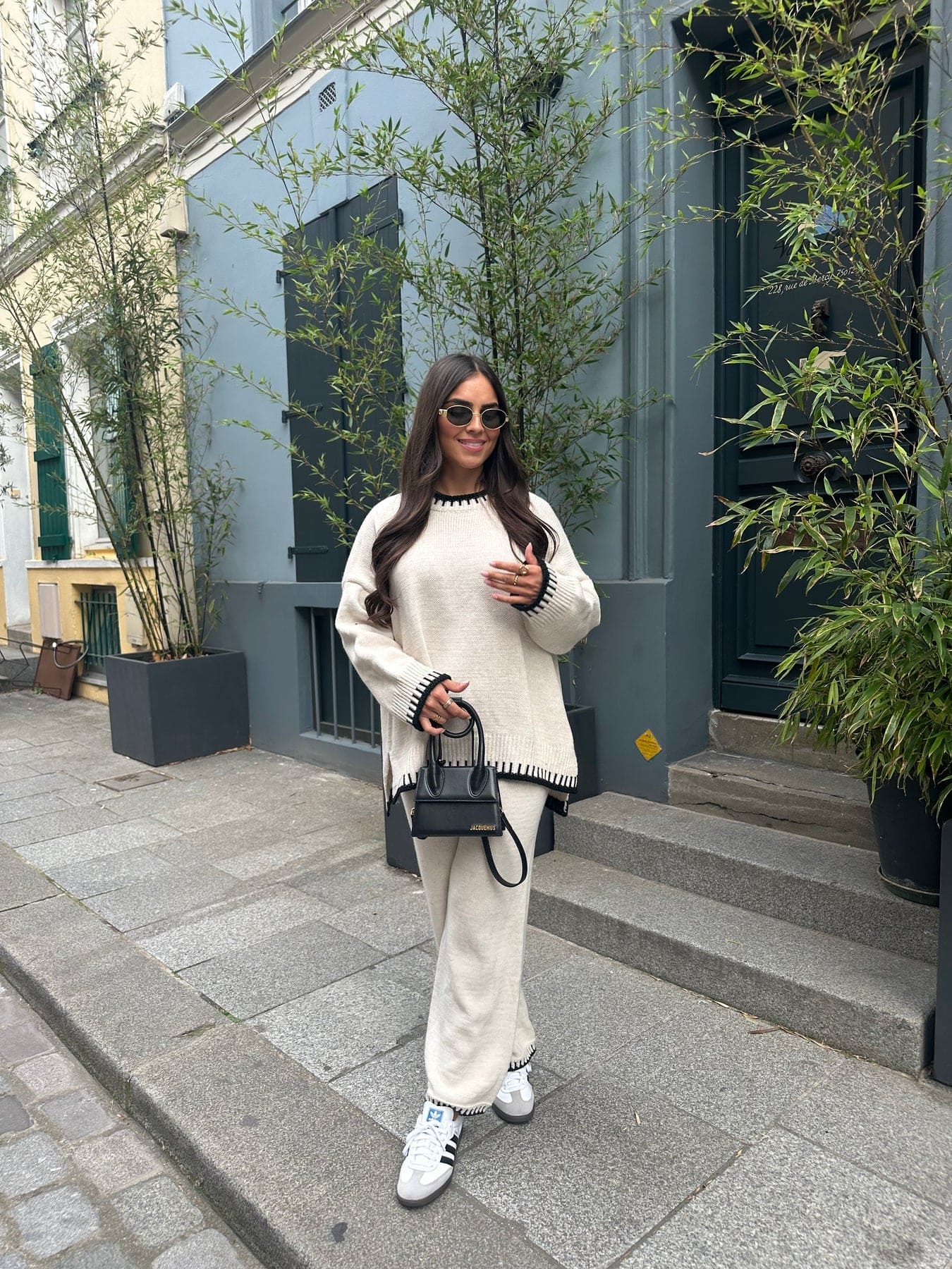 Découvrez le summum du confort avec notre ensemble en laine, disponible dans des teintes sophistiquées de beige et noir. Conçu pour vous envelopper dans la chaleur et l'élégance, cet ensemble apportera une touche de luxe à votre garde-robe d'hiver. Fabriqué avec des matériaux de qualité supérieure, il offre une douceur inégalée tout en vous maintenant stylé(e) et chic.🎀✨