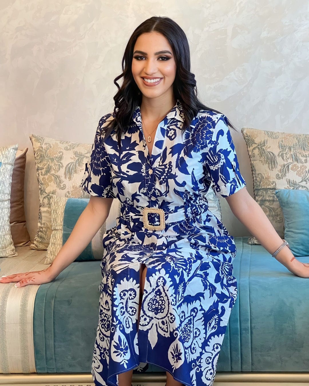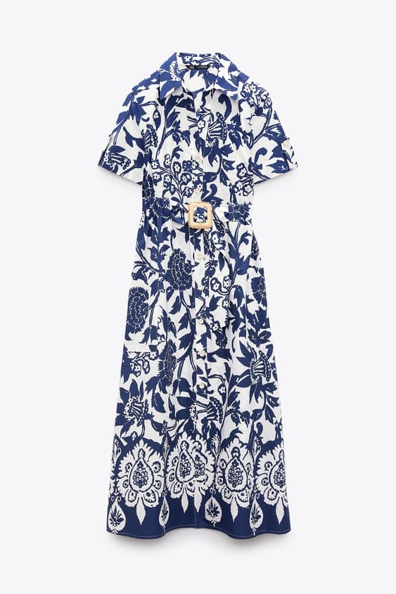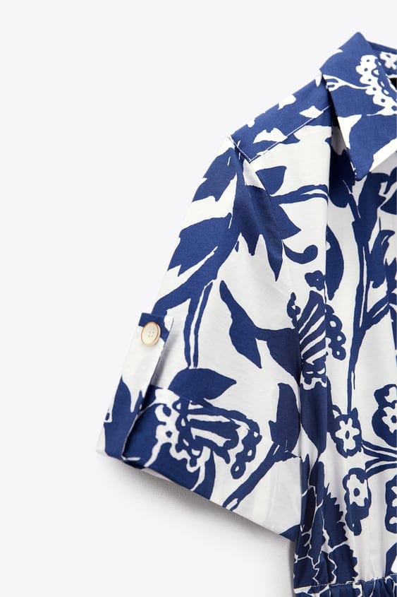 Robe à col Johnny et manches courtes à revers avec pattes boutonnées.