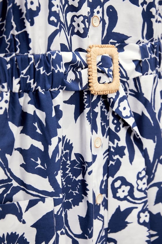 Taille élastiquée avec une ceinture en tissu assortie. Poches plaquées devant. Devant boutonné